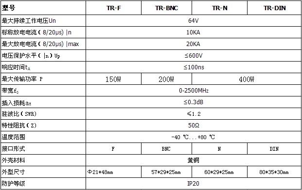 TR系列產(chǎn)品開關(guān)型天饋電涌保護器用以防止因饋線感應雷擊過電壓而對天線及收發(fā)設(shè)備造成的損害,適用于無線通信,移動基站,微波通信,廣播電視等同軸天饋系統(tǒng)信號防雷浪涌保護,安裝于防雷分區(qū)LPZ0A-1及后續(xù)分區(qū)